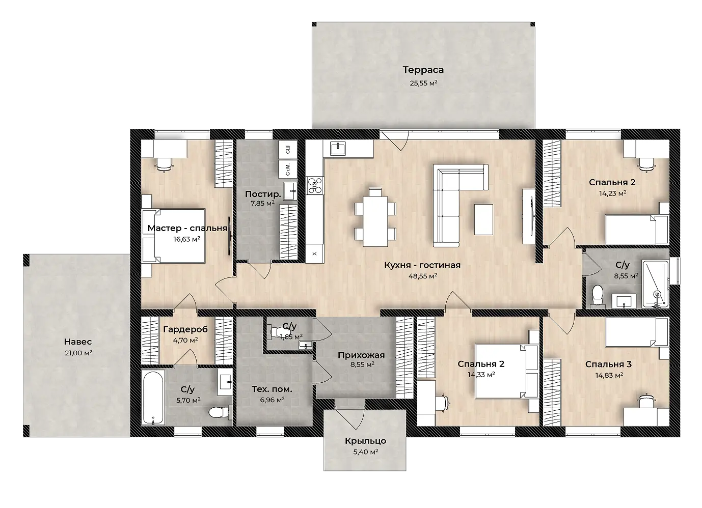 Подходит для постоянного проживания без чистовой отделки.